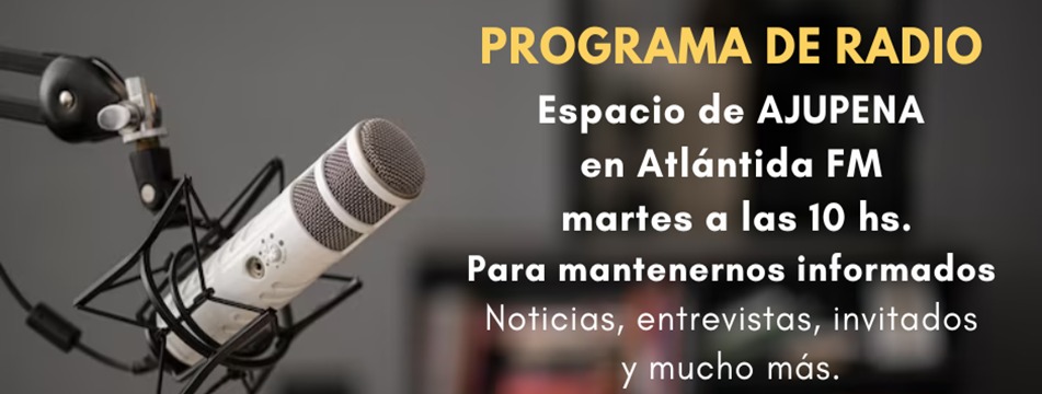 Inicio Sin categoría Espacio de Ajupena en Atlantida FM Martes 10am Sin categoría Espacio de Ajupena en Atlantida FM Martes 10am Por AJUPENA - 31 enero, 2024 157 0 Destacados Cambio de Horario en Ajupena Destacados 1 diciembre, 2025 Boletines Mensuales 2025 Destacados 26 mayo, 2020 Espacio Radial Ajupena Destacados 18 febrero, 2020 Eventos 10 de Noviembre vamos a Termas Romanas Eventos 31 agosto, 2025 Punto De Encuentro Eventos 31 julio, 2025 TARDES LÚDICAS EN AJUPENA. Eventos 15 abril, 2024 Viernes 28 y Sabado 29 Muestra De Fin De Año de... Eventos 31 octubre, 2025
